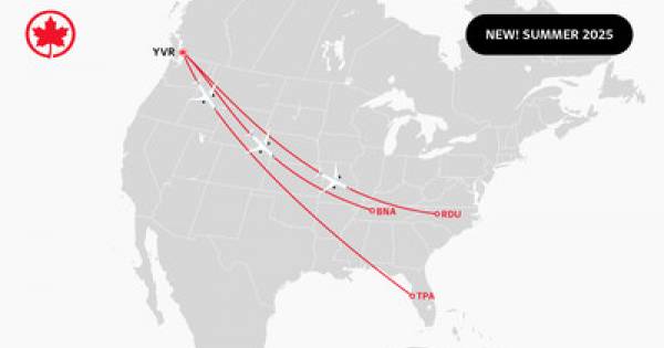 Air Canada announced today its most comprehensive transborder schedule from its Vancouver (YVR) hub. Three new transborder routes to Tampa, Raleigh and Nashville, plus more capacity to Austin, Denver and Miami have been added, offering even more exciting options for travellers on both sides of the border. Together with its partner United Airlines, Air Canada will offer up to 7,700 seats on 58 daily non-stop flights to 21 US destinations next summer, representing an 11% increase in seat capacity from summer 2024. All flights are now available for sale at aircanada.com, through Air Canada Contact Centres and via travel agents.
