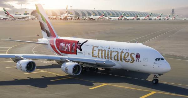 Emirates unveils bold A380 livery celebrating AC Milan’s 125th anniversary